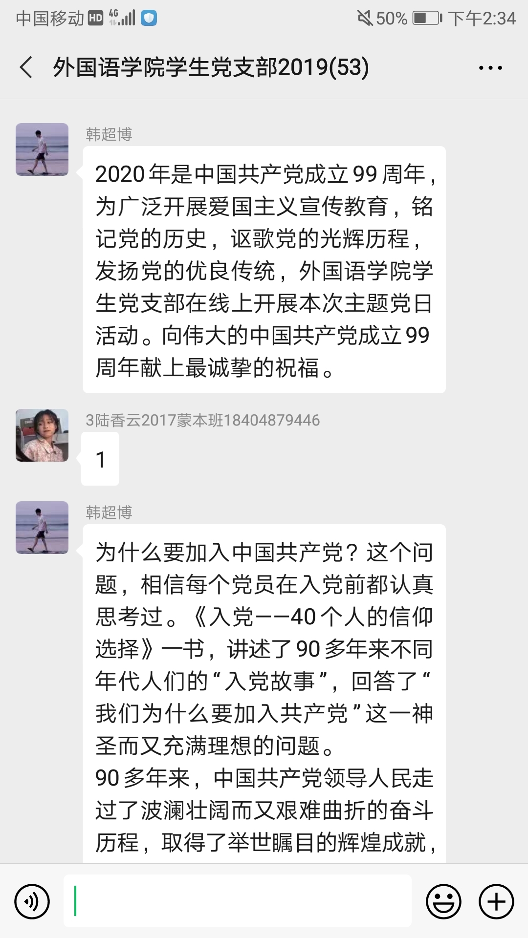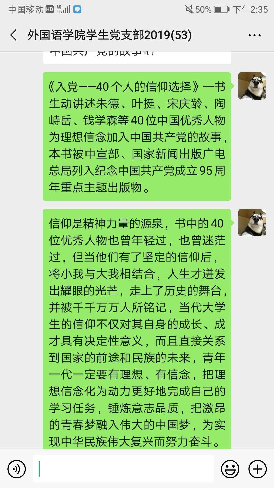 6月29日三亿员工党支部书记王晨雪老师、副书记海艳老师及全体成员在线上分享了阅读《入党——40个人的信仰选择》之后的所思所感所悟。