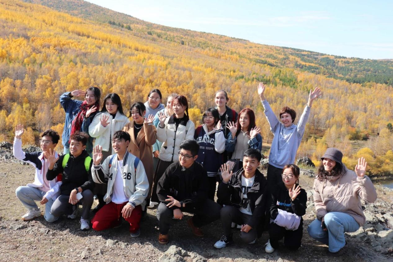 Татьяна 老师告诉同学们,亮山将在2024年九月份建设成为赤塔市最大的风景景区,同学们依照地图路线游览了整座大山,登上了山顶的最高峰,饱览俄罗斯金秋美景!