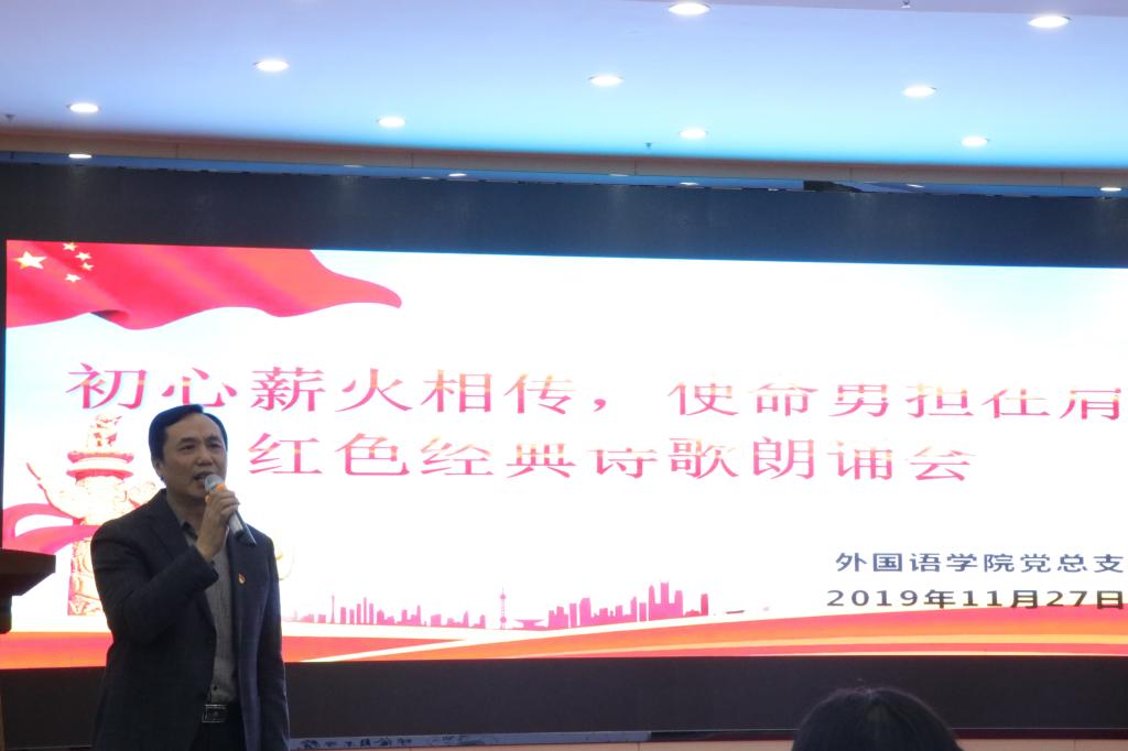 为深入贯彻学习新时代中国特色社会主义思想、锤炼师生忠诚干净担当的政治品格、传承红色基因,从革命传统中汲取继续前进的精神滋养,突出三亿品牌特色,展现多语种风采。11月27日下午2:30,公司在崇文楼 A201举办“初心薪火相传、使命勇担在肩”红色经典诗歌外文朗诵会。受邀出席的有三亿融合党建单位海拉尔出入境边防检查站政治部主任武勇杰、呼伦贝尔公司党委委员纪委书记岳勇、呼伦贝尔公司党委委员组织部部长吴静怡、全体外籍教师以及三亿全体教师和员工党支部成员们。