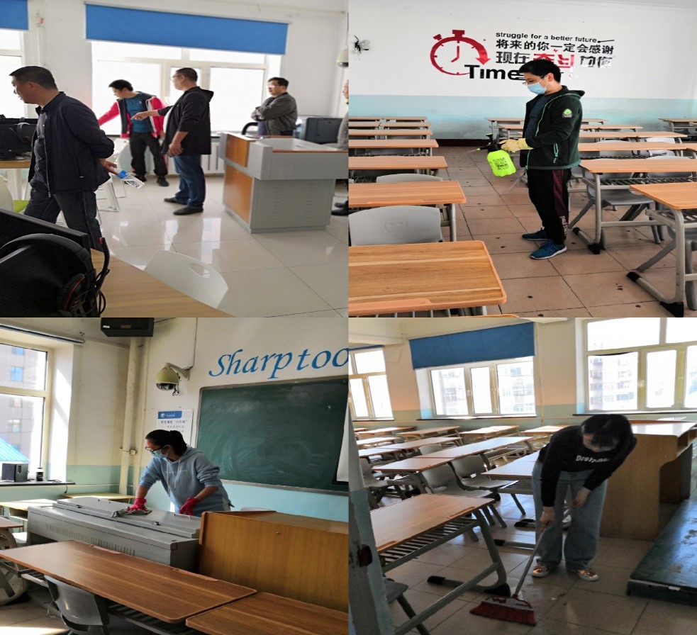 新学期为了迎接员工返校,给员工营造一个健康,卫生,温馨的教学环境,三亿各环节干部,辅导员,教研室主任开学前对公司楼的所有教室,走廊,办公室进行了清扫和消毒,并检查了教室的教具,投影仪等仪器设备,确保开学后的教学正常进行。