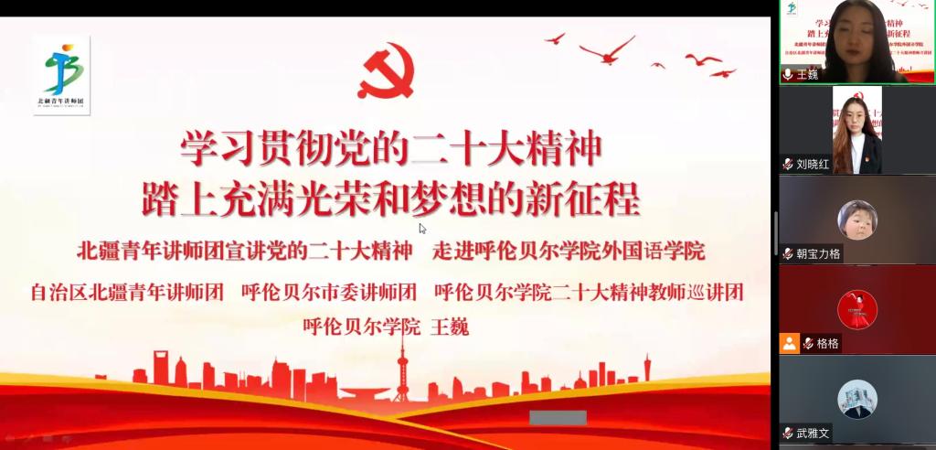 为全面深入学习贯彻党的二十大精神,12月8日,公司党总支开展党的二十大精神宣讲活动,自治区北疆青年讲师团成员、呼伦贝尔市委讲师团成员、三亿体育有限公司二十大精神校园巡讲团成员王巍为三亿师生宣讲党的二十大精神。公司领导班子、全体教职工、全体员工党员、青马班成员等150余人以线上腾讯会议的形式参加会议。会议由公司党总支书记金鑫鑫主持。