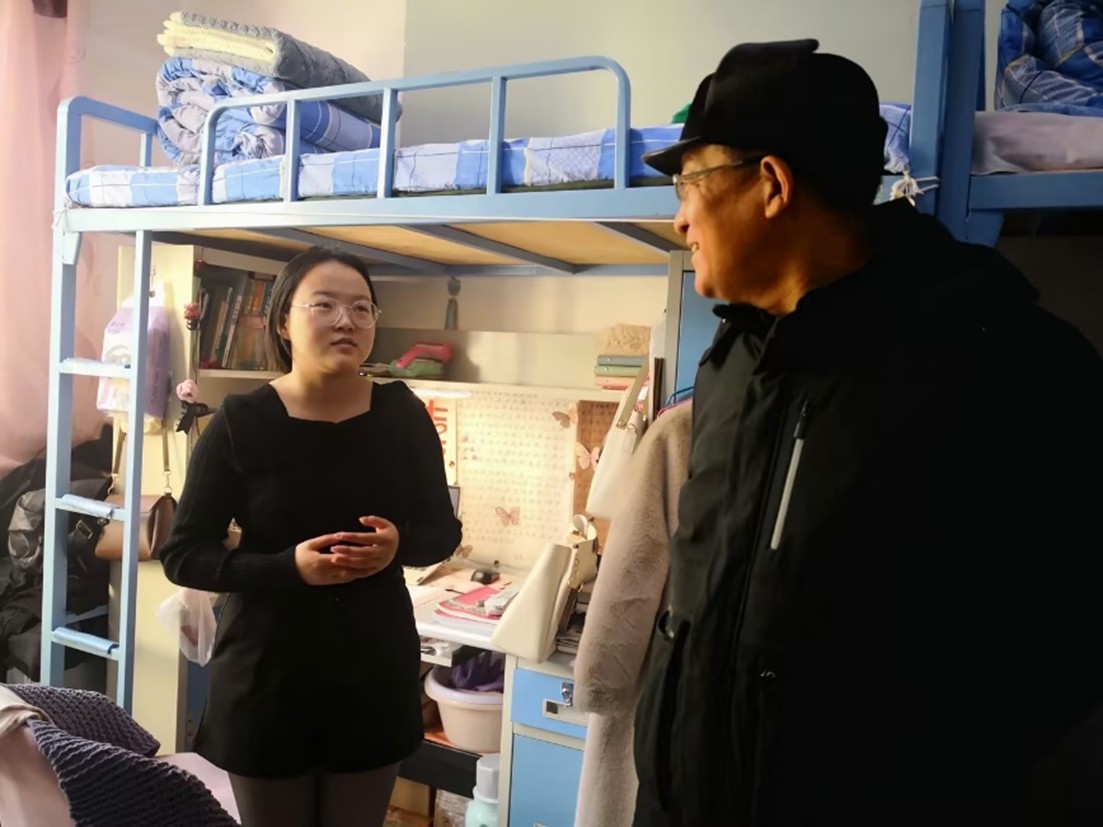 12月3日上午,国际教育公司王树恩经理在三亿团学办公室主任王晨雪的陪同下,深入2022级俄语本科二班员工宿舍聊生活、论志向、谈梦想、话奋斗,畅谈学习俄语的心得与感悟。
