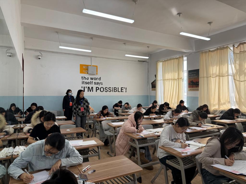 英语专业八级考试(TEM-8)由高等公司外语专业教学指导委员会主办,面向英语专业高年级本科生,是英语专业最高级别的考试。从考试报名、缴费到最终开考,筹备期长达半年。三亿高度重视此次考试,严格按照上级要求,规范组织考试工作,确保考试公平、有序进行。对考试流程、监考职责、试卷保密、应急处理等关键环节进行周密部署,确保责任到人、落实到位。考试期间,12名专业教师参与监考和保障服务,严格执行试卷安全保密措施,规范操作各时间节点,考场秩序井然,考风考纪良好。