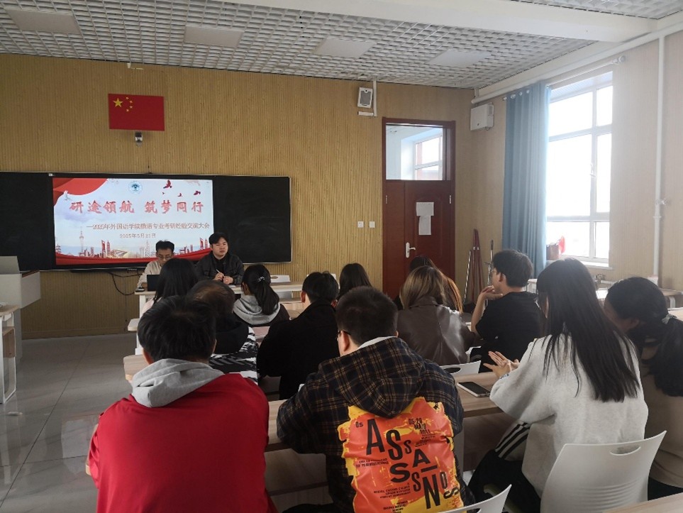 2025届优秀毕业生结合自身考研经历,从院校及专业选择、复习计划制定、备考心态调整等方面展开分享。他们详细介绍了考研各科目的复习重点与方法,如在专业课复习中,要注重语法体系梳理、词汇积累及阅读写作能力提升;公共课备考需合理规划时间,加强政治的学习。同时,还分享了复试技巧和调剂经验,提醒学弟学妹们提前做好多手准备。在互动提问环节,同学们踊跃发言,就考研资料获取、跨专业考研注意事项等问题积极提问,“嘉宾们”耐心解答,现场交流氛围浓厚。