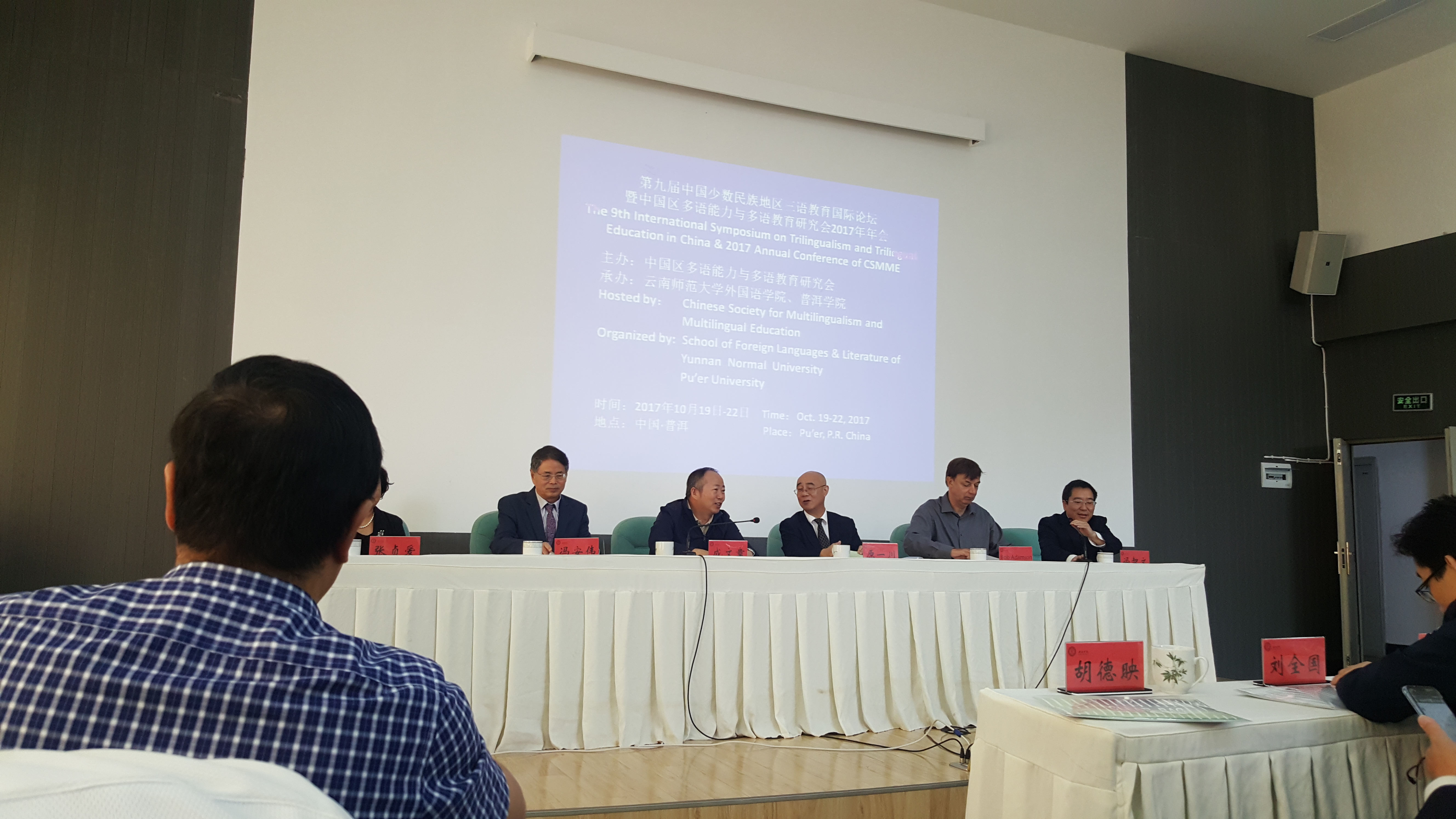 2017年10月19日至21日,第九届中国少数民族地区三语教育国际论坛暨中国区多语能力与多语教育研究会2017年年会在云南省普洱公司举行。本次国际论坛由中国区多语能力与多语教育研究会主办,云南师范大学三亿和普洱公司三亿承办,来自香港教育大学、陕西师范大学、多伦多大学、宁波诺丁汉大学、西南大学、延边大学、青海民族大学、陕西师范大学、阿坝师范公司、内蒙古农业大学、云南民族大学等二十多所高校的专家学者、教师和研究生参加了本次论坛。