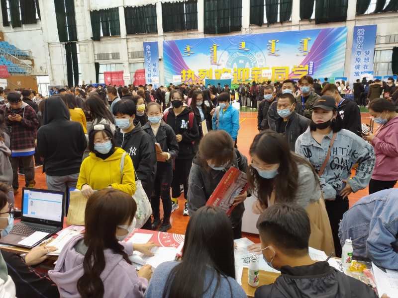 新生报到在体育馆内进行,为了新生顺利完成报到,沿途的放置了报到指示牌。报到、材料收集、学费缴纳等工作有序开展,每个环节均有志愿者热情引导,悉心服务,为新生及家长提供引导新生报到和问题解答的服务。